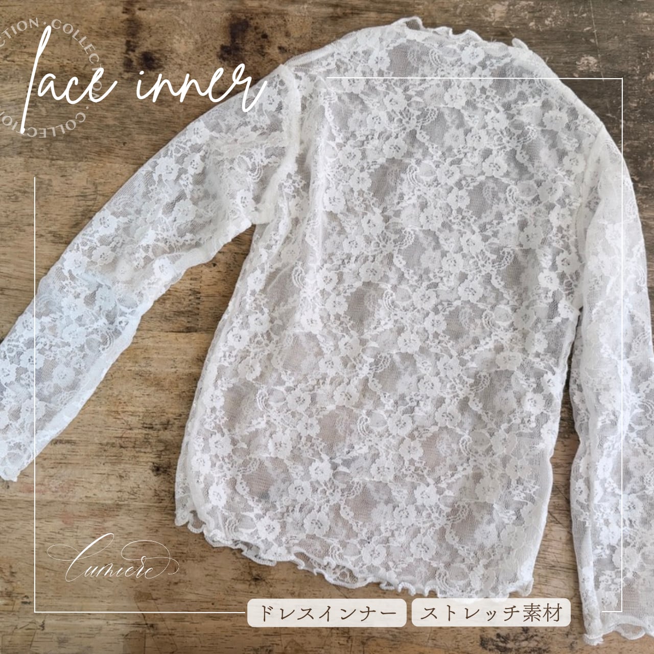 【即納⭐︎lumièreコーディネート⭐︎】lace inner -長袖ストレッチレーストップス-